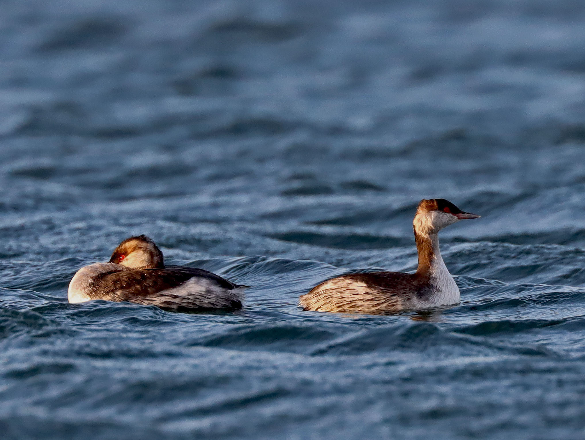 Slavonian Grebe is a strangely rare visitor to Whalsay and it must be well over ten years since I last saw one (cant be arsed to trawl through old diaries!). An adult and juvenile were in the Voe at the kirk ayre, Brough today and they allowed a reasonably close approach for photos. A group of wild swimming women in the same voe left me running the "pervert with a camera" gauntlet but I went anyway. The autumn has been pretty slow so far with Barred Warbler 5/9, Wryneck 8/9, recently fledged Stonechat 12/9, two Rosefinches 17/9 and two Bat sp. today in fading light at East Hamister (probably Narthusius pipistrelle) among the commoner stuff.